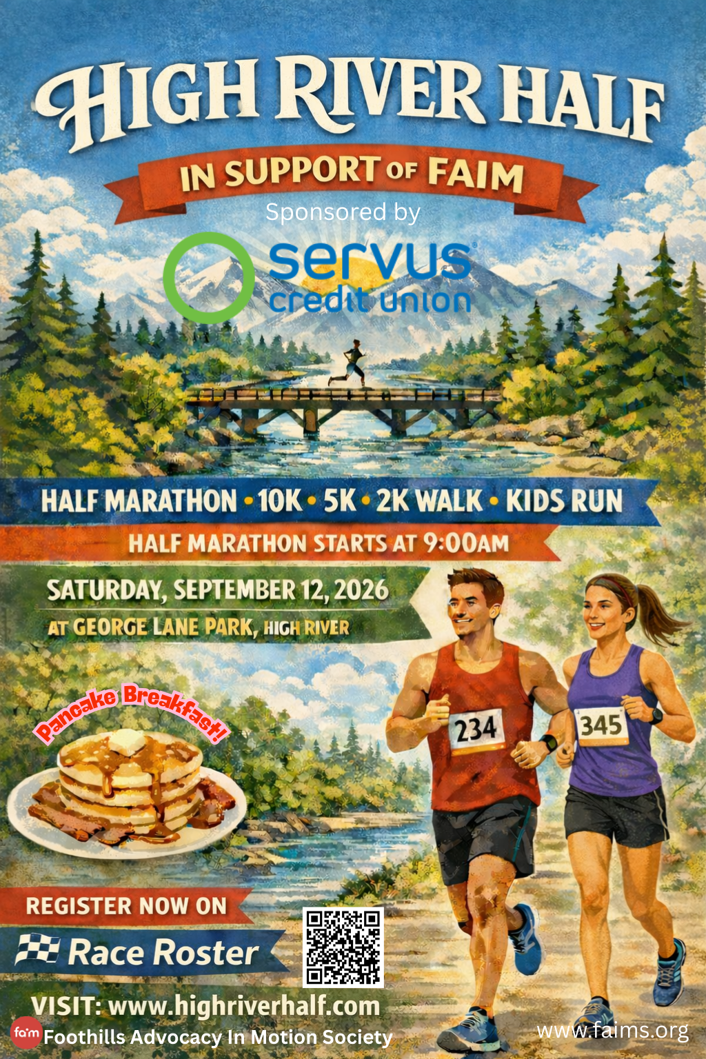 Mark your calendars! September 12th, 2026, the High River Half, Sponsored by Servus Credit Union in Support of FAIM, is back and better than ever!